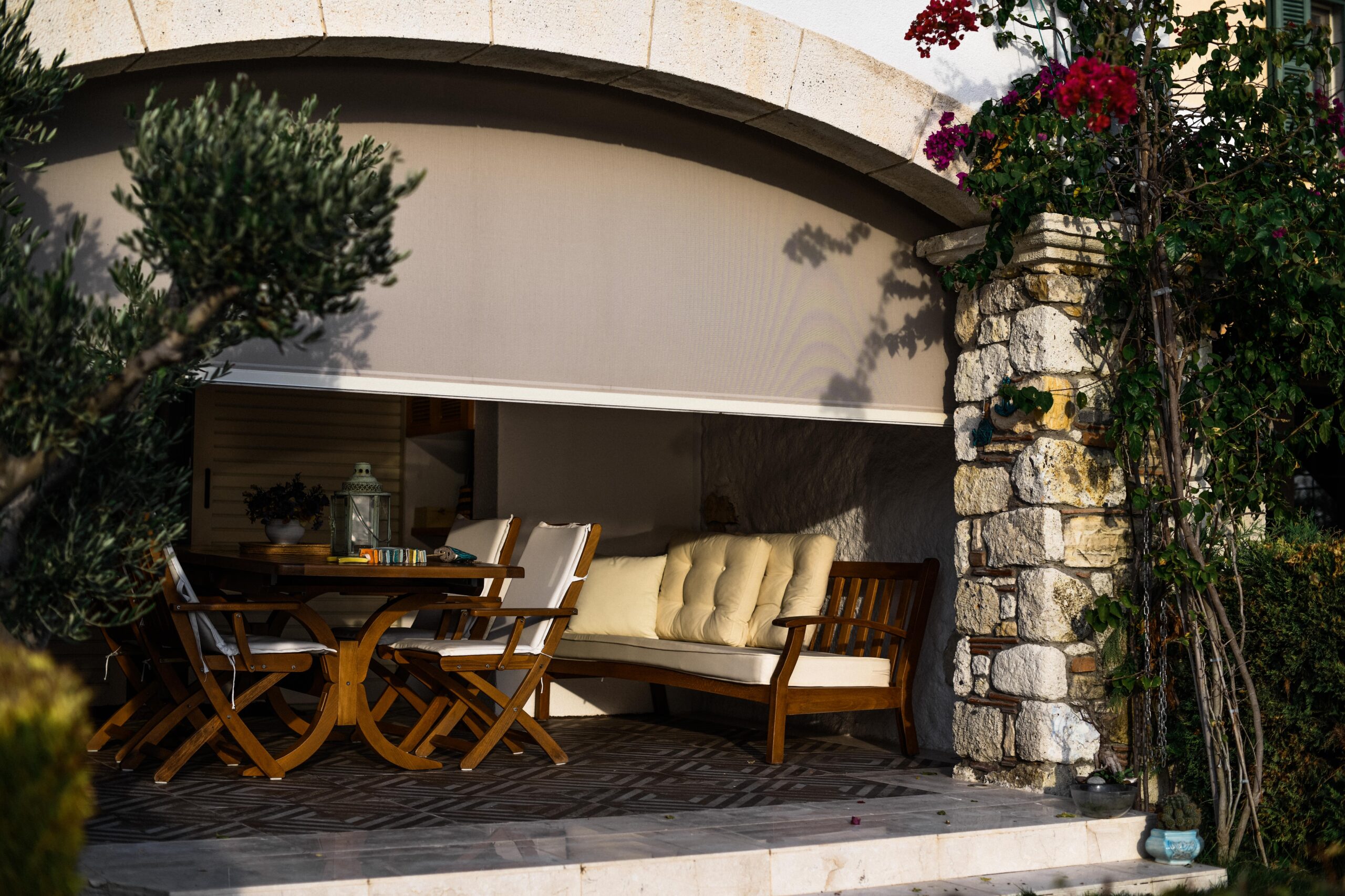 Draw the curtains partially or completely to create an intimate, sheltered atmosphere ,perfect for residential gardens, restaurant terraces, and commercial outdoor settings.
