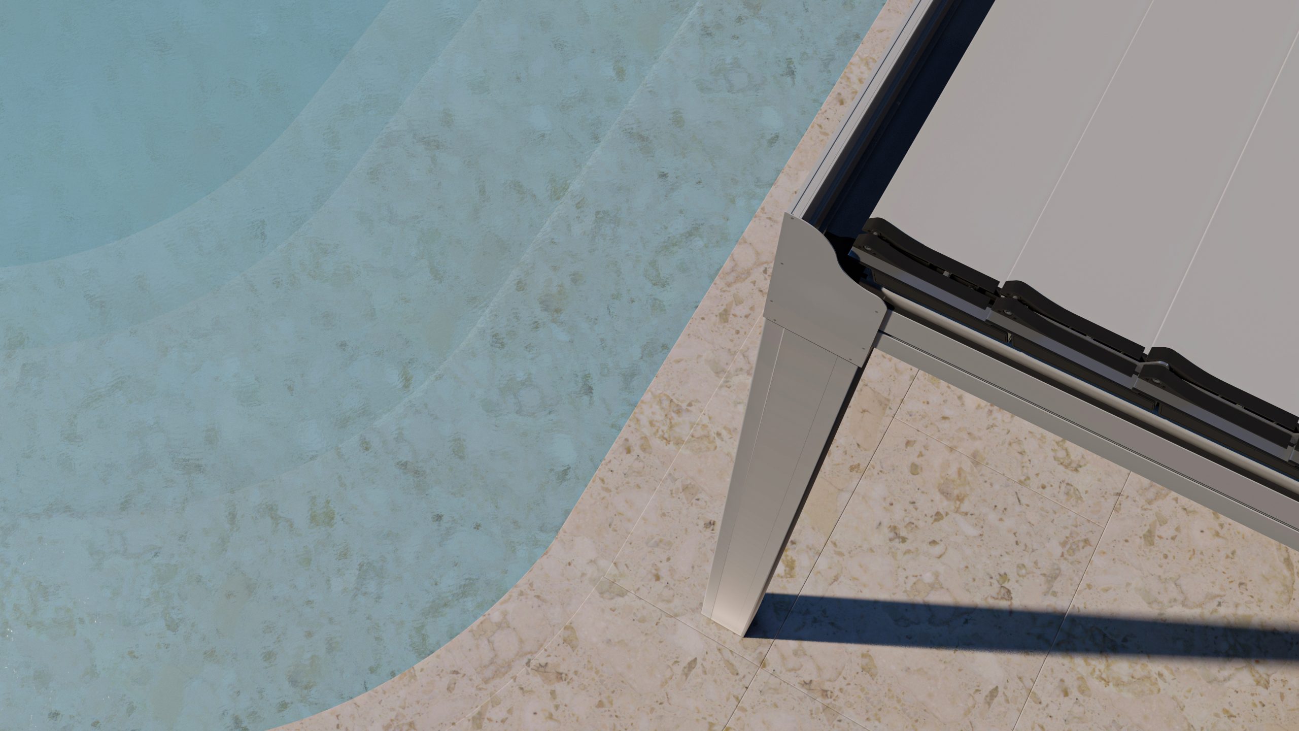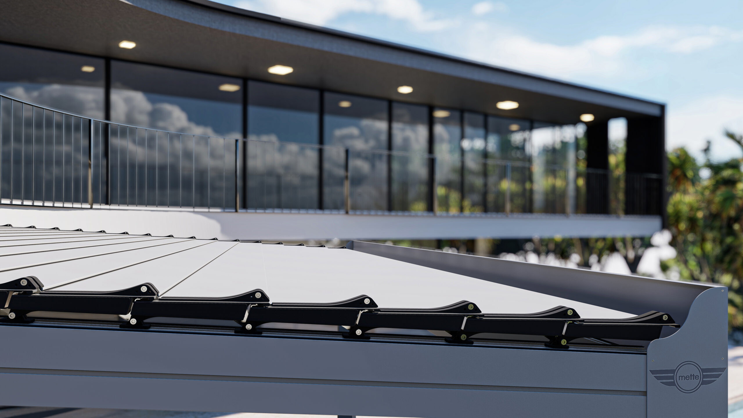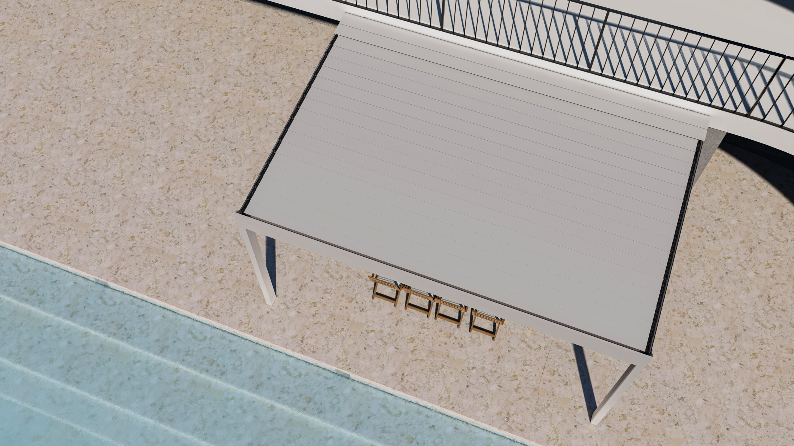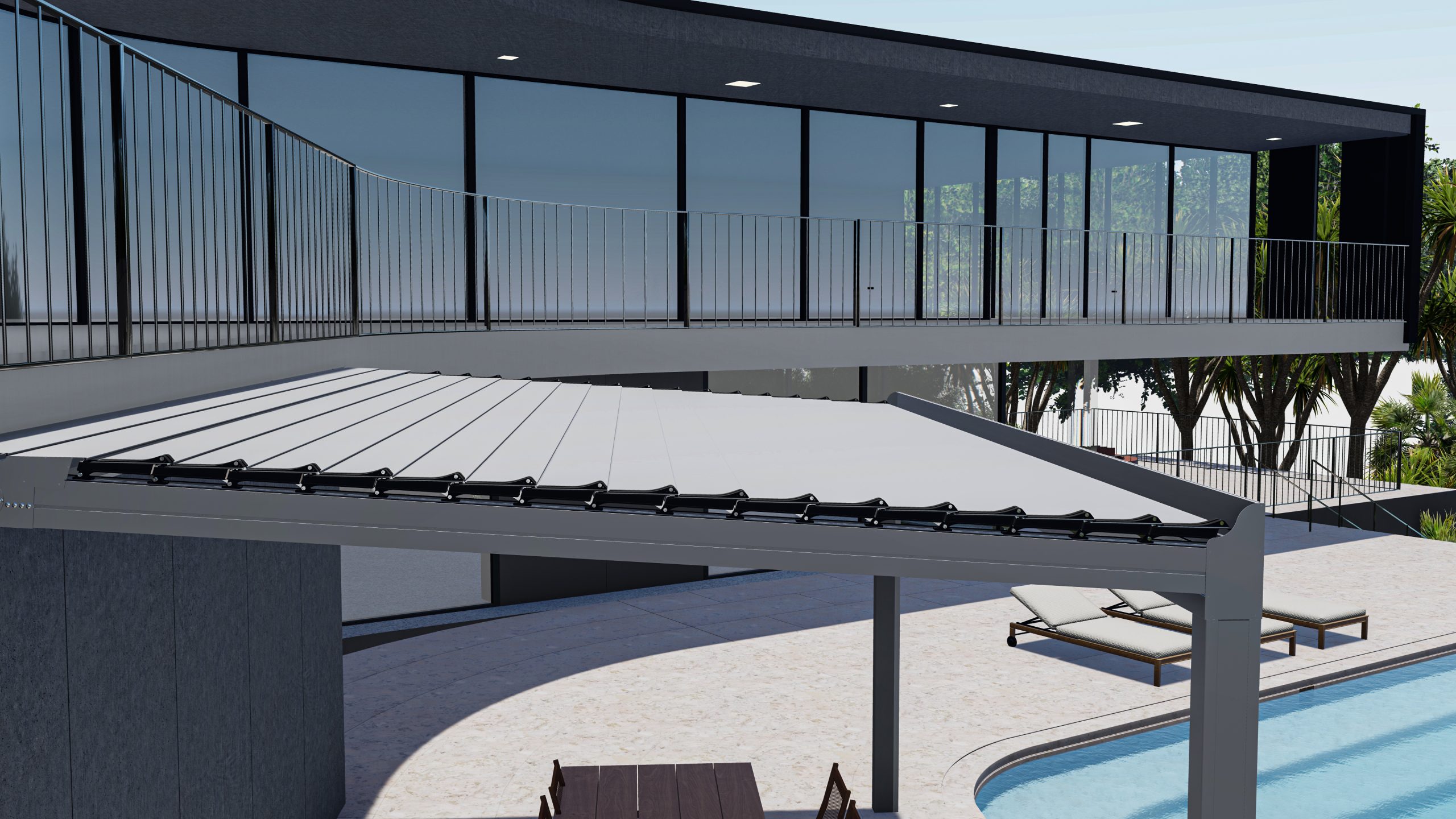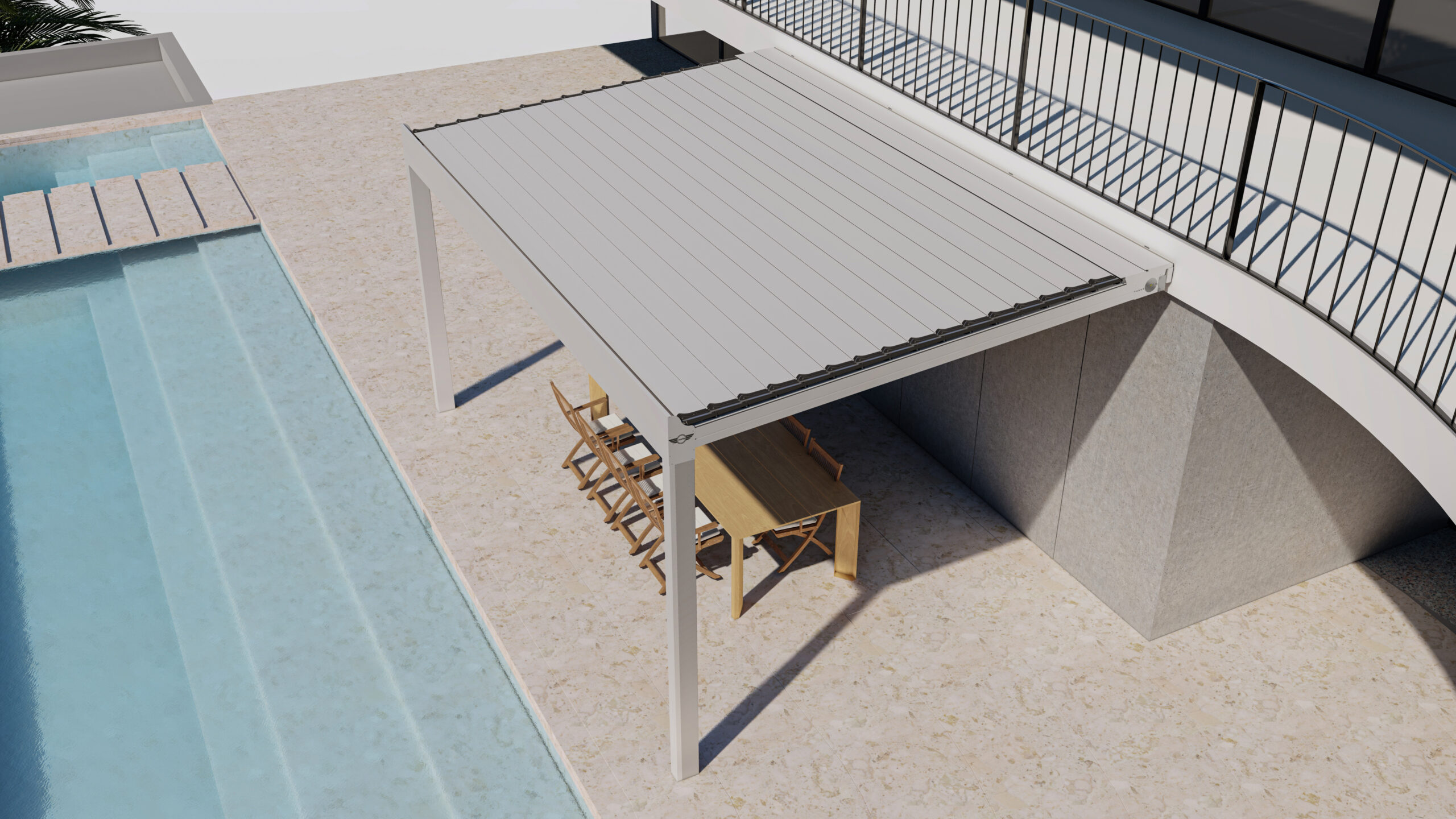 The louvres on the pergola ceiling open and close on demand, giving you precise control over sunlight, wind, rain, and temperature at any time of day.