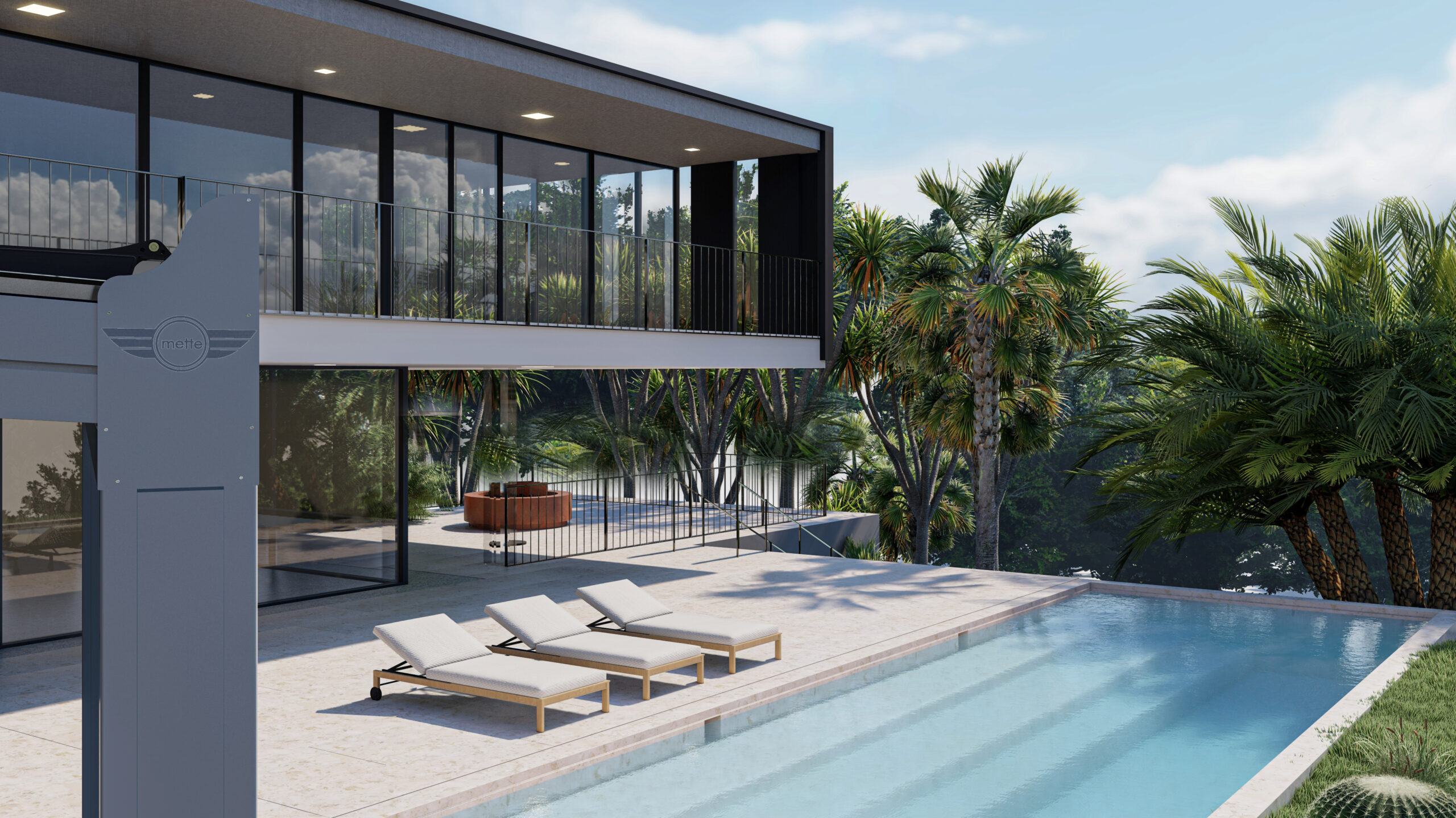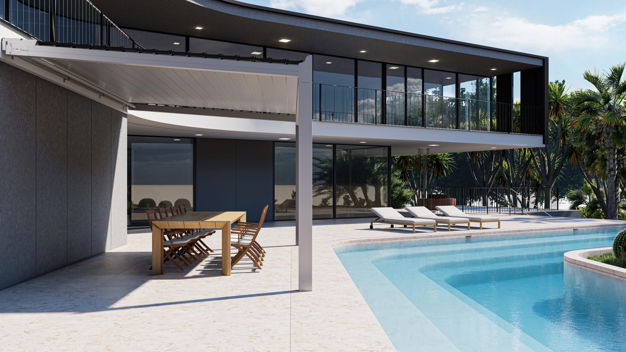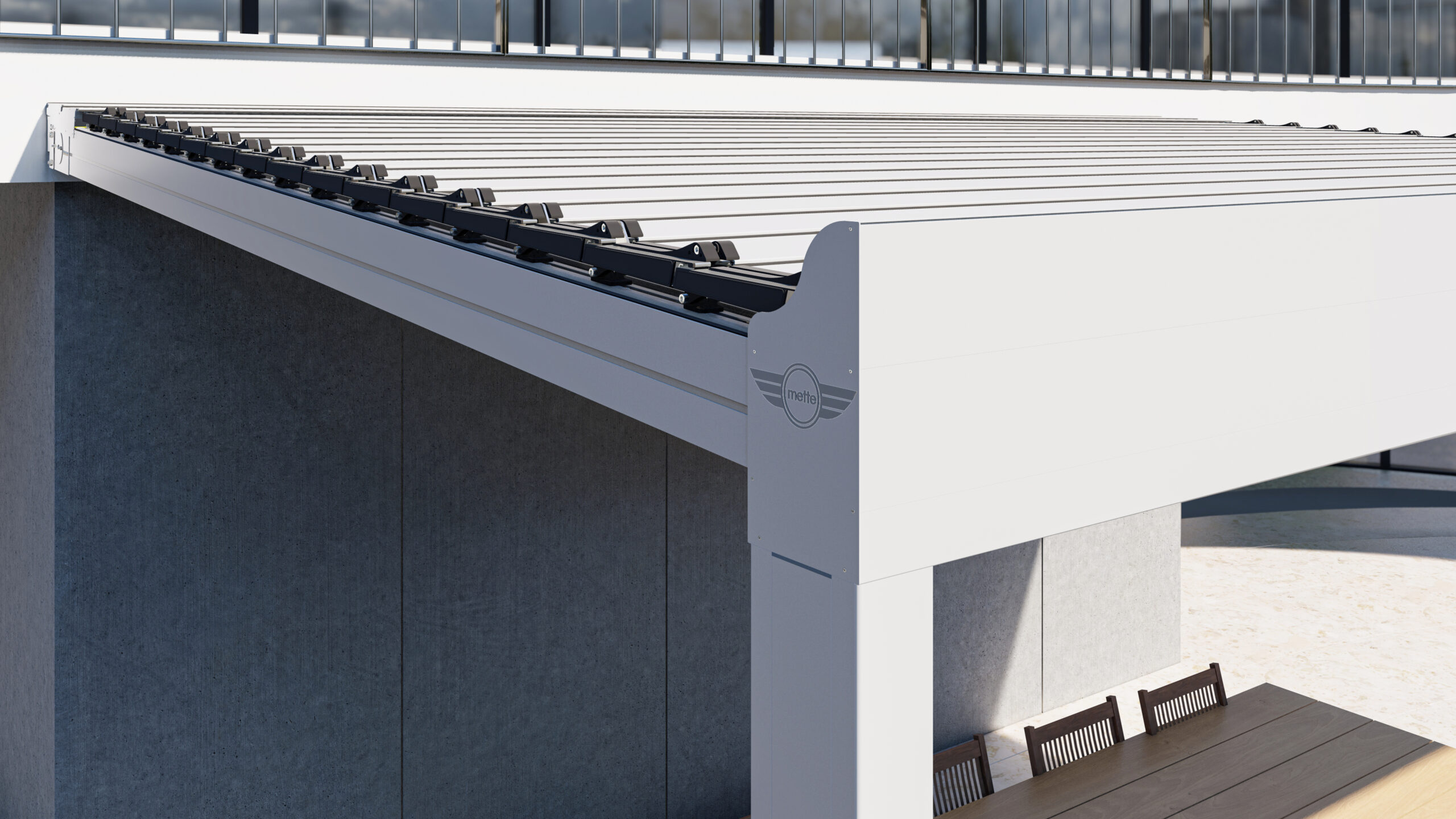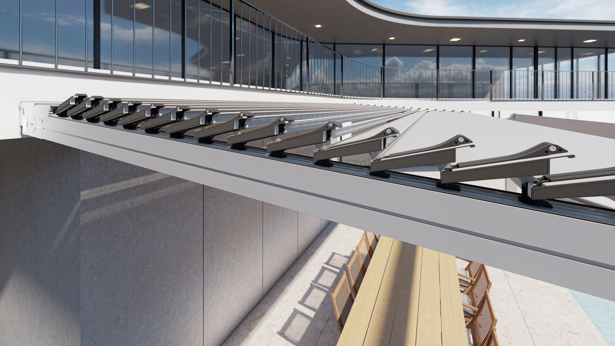The louvres on the pergola ceiling open and close on demand, giving you precise control over sunlight, wind, rain, and temperature at any time of day.